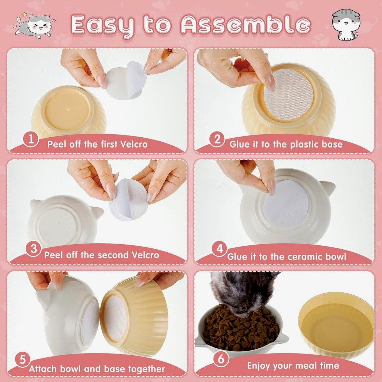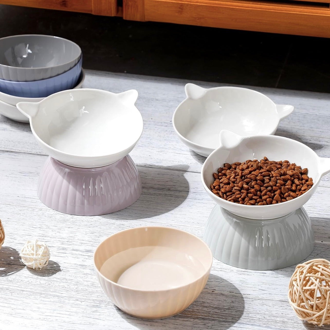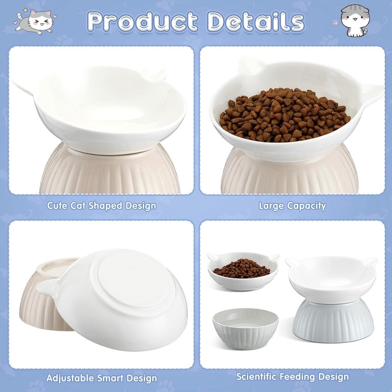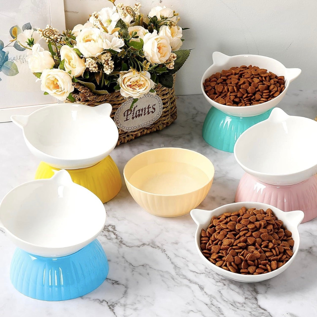 El bowl esta elaborada en cerámica, material ideal para prevenir el acné felino y mantener el agua y alimento más fresco. La altura y la inclinación ayuda a mejorar la digestión de tu michi y le permite comer de una manera cómoda.