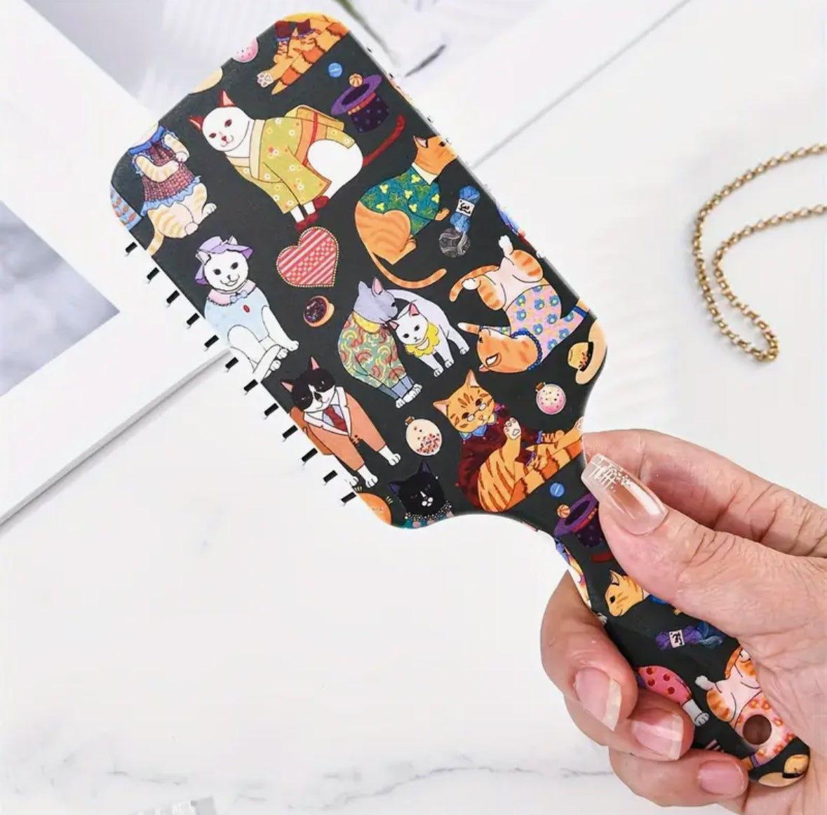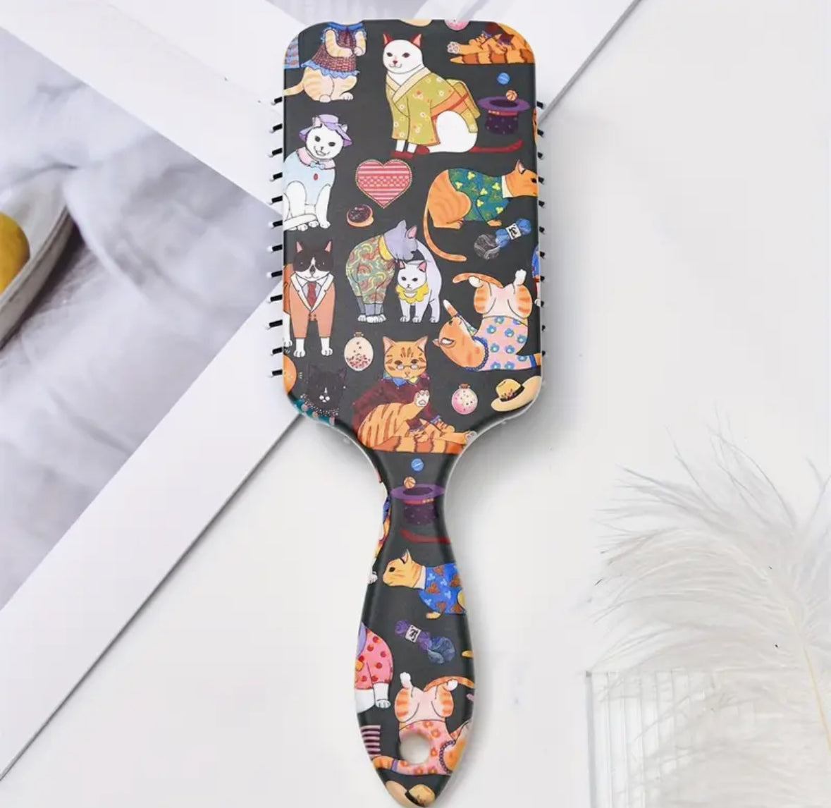 Cepillo para el cabello con diseño de gatitos con cerdas suaves.