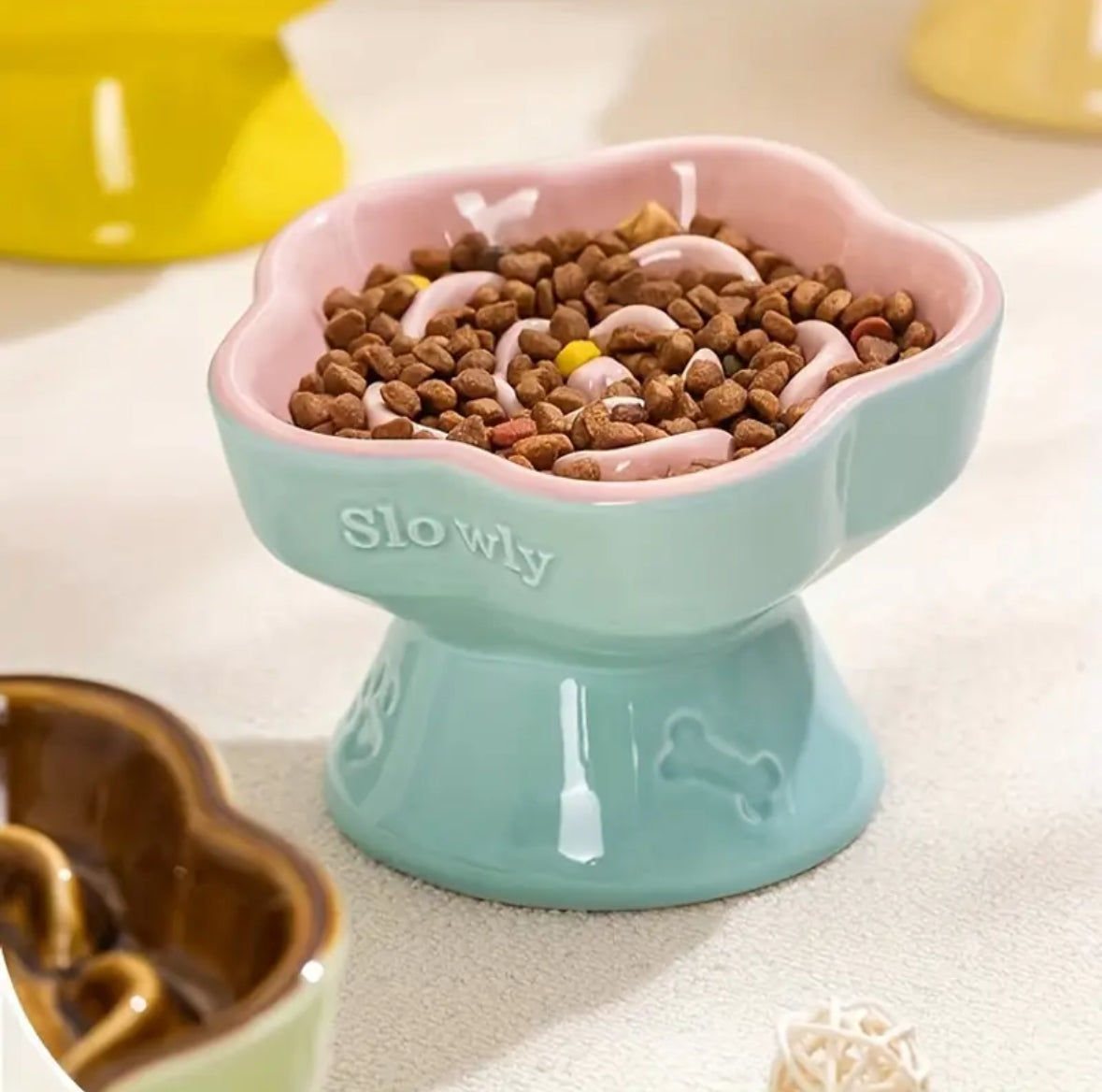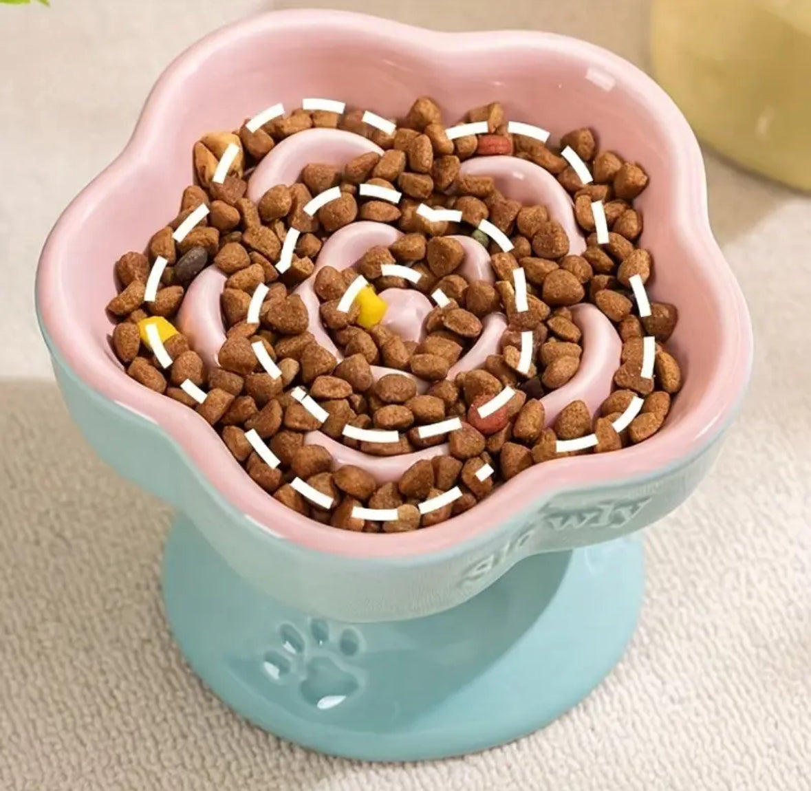Este bowl es ideal para gatitos ansiosos, para aquellos que comen todo rápido y luego vomitan. Las pepitas del concentrado se meten en el interior de las estrías que tiene el bowl y esto hace que coman lento y puedan digerir mejor.