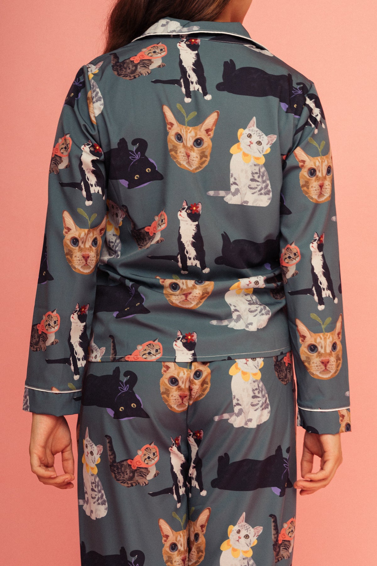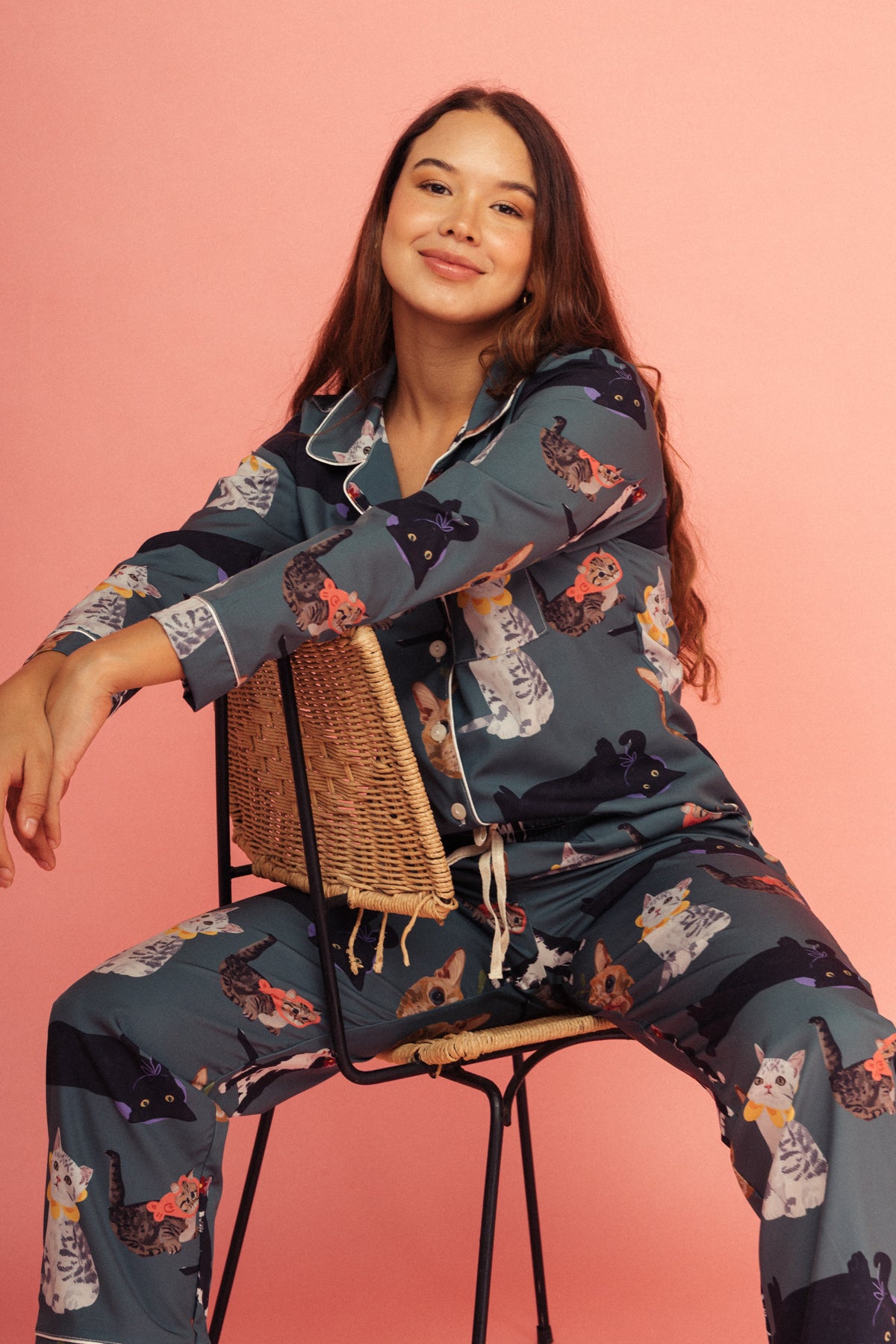 Conjunto de pijama elaborado en Seda Mango 96.05% poliéster y 3.95% elastomero de 95 gramos con silueta semi amplia, textura liviana y fresca. La camisa tiene botonadura plástica sobre toda la perilla y los pantalones y shorts pretina enresortada y cordón ajustable en la cintura.