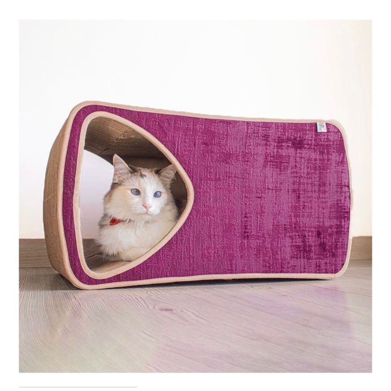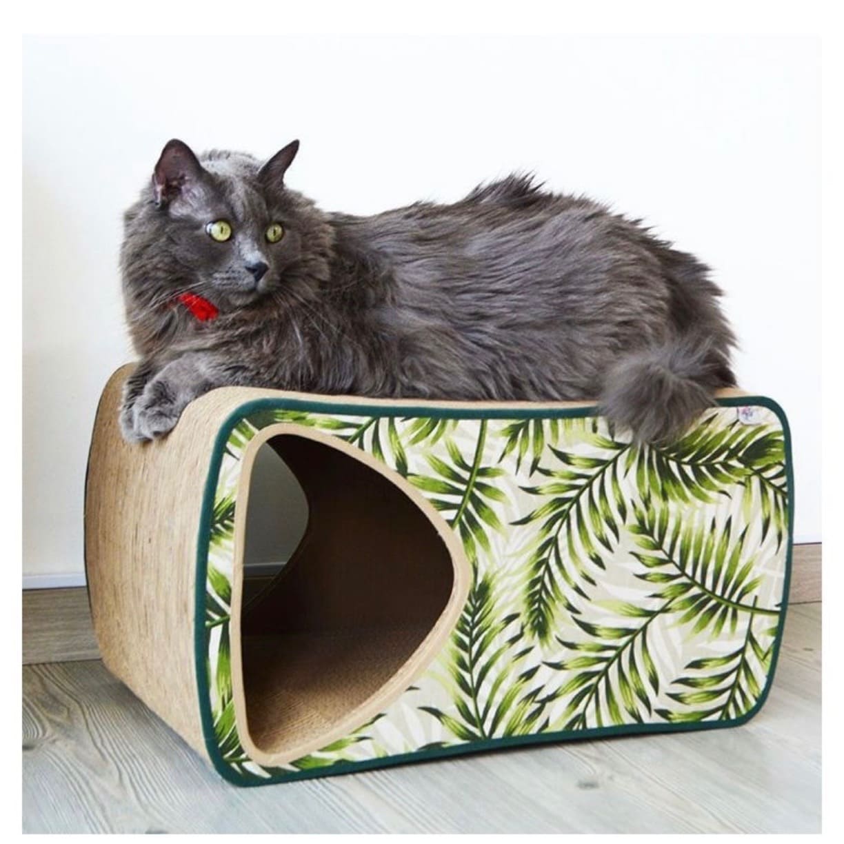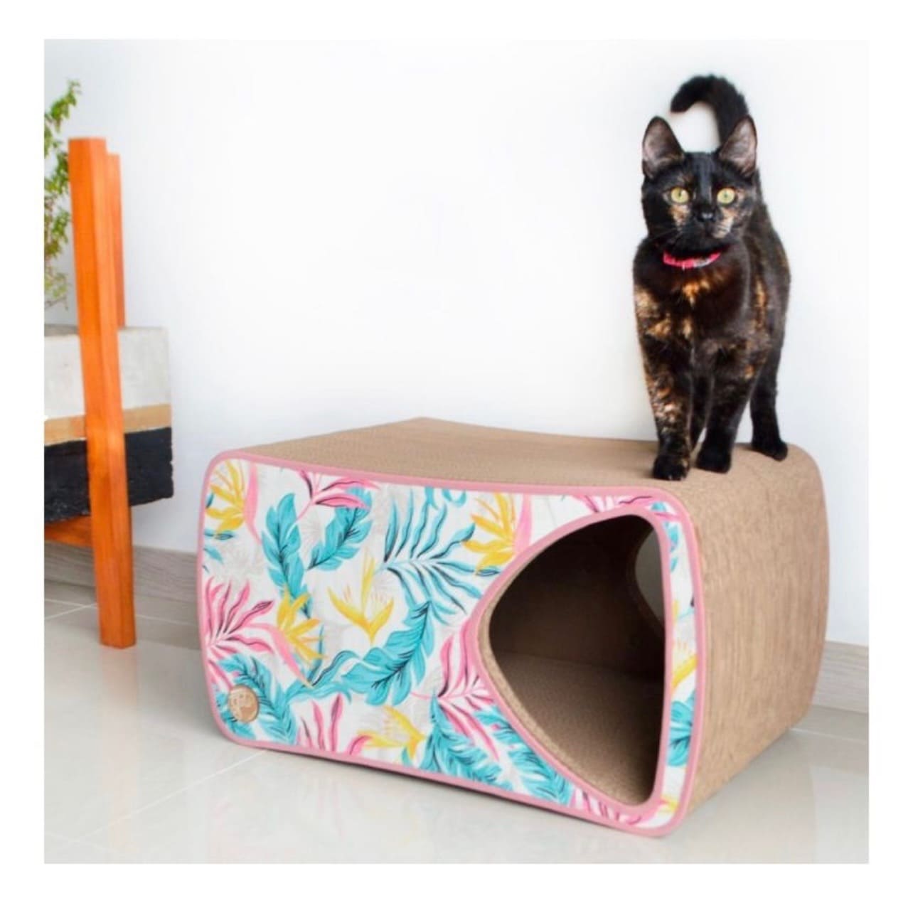 Rascador para gatos en cartón corrugado doble pared con cueva al interior. Ideal para que tu gato exprese su conducta natural de rasguñar y de buscar lugares de guarida.